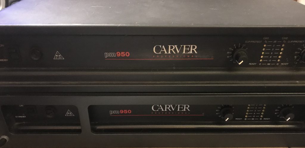 * Versterkers: Carver PM950, Dynacord PAA460 en Yamaha PC1602